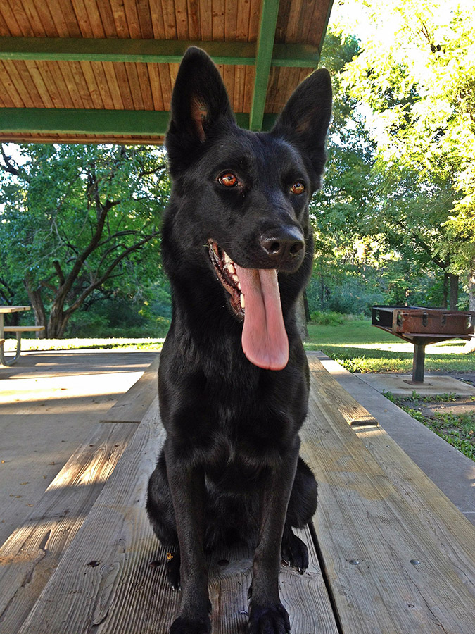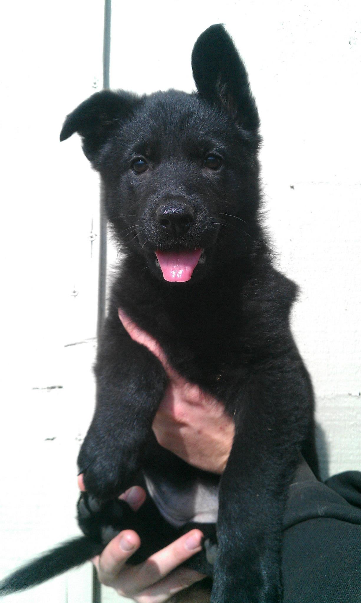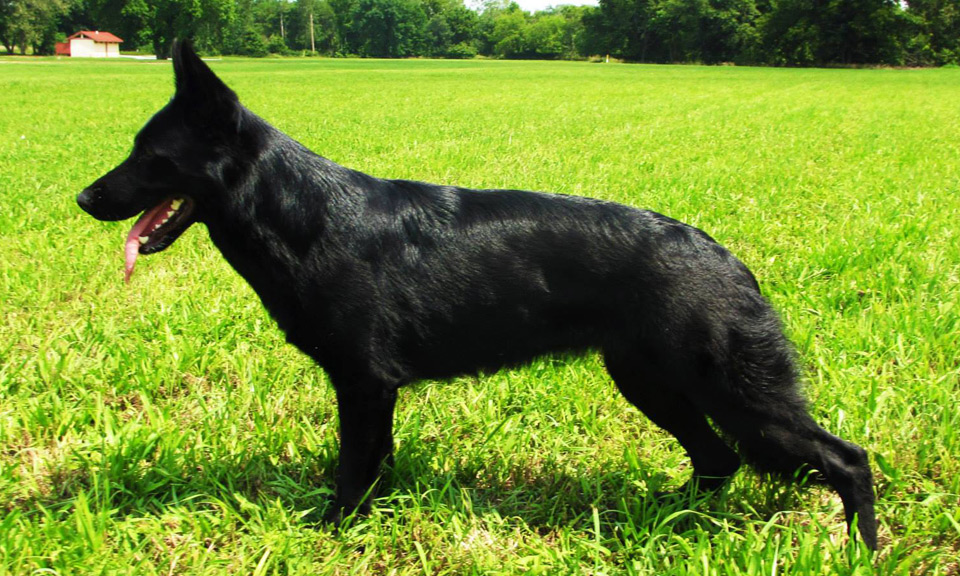 A medium sized, strongly built female with very good pigmentation. High withers, firm back, croup could be longer/better angled. Very good color, pigment and overall balance. Good angulation in the front, very good in the rear. A head similar to her mothers in that it is strong, but not over done. Azrael has a beautiful ear set, a well sprung chest and good substance.